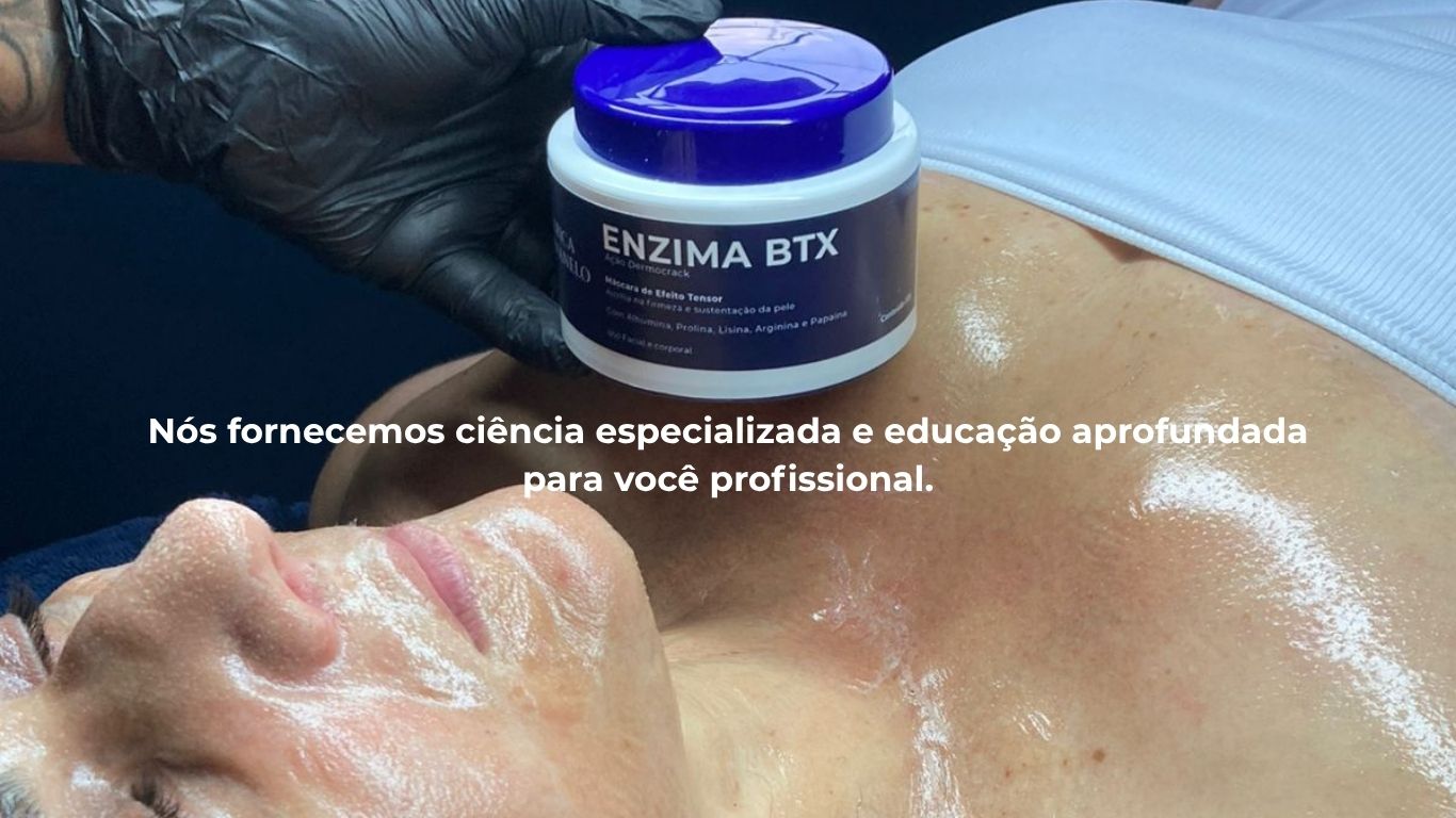 A Inteligência Bioquímica ao seu alcance. O Método Enzima BTX® foi desenvolvido para profissionais que buscam ir além. Não é sobre aplicar produtos, é sobre entender a fisiologia e reprogramar a regeneração celular através de um sistema comprovado de 4 etapas.