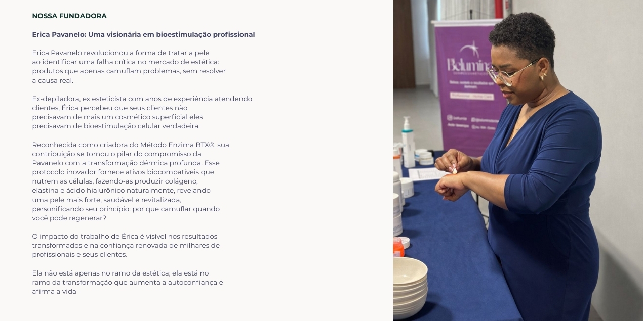 A pele reconhece o que é compatível com sua fisiologia. Quando isso acontece, o corpo responde com estímulo, regeneração e resultados reais. Esse é o princípio da Erica Pavanelo Cosméticos.